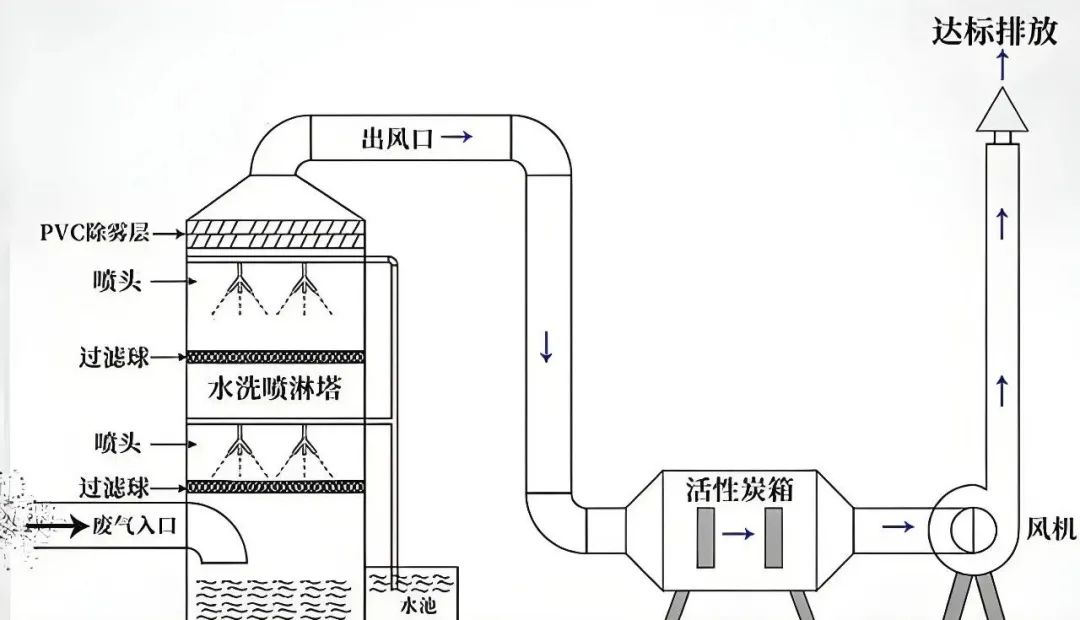 具體來說,以稀堿液或水為吸收劑,利用噴霧系統充分霧化吸收劑,與容器內的廢氣均勻混合,達到良好的吸收效果。